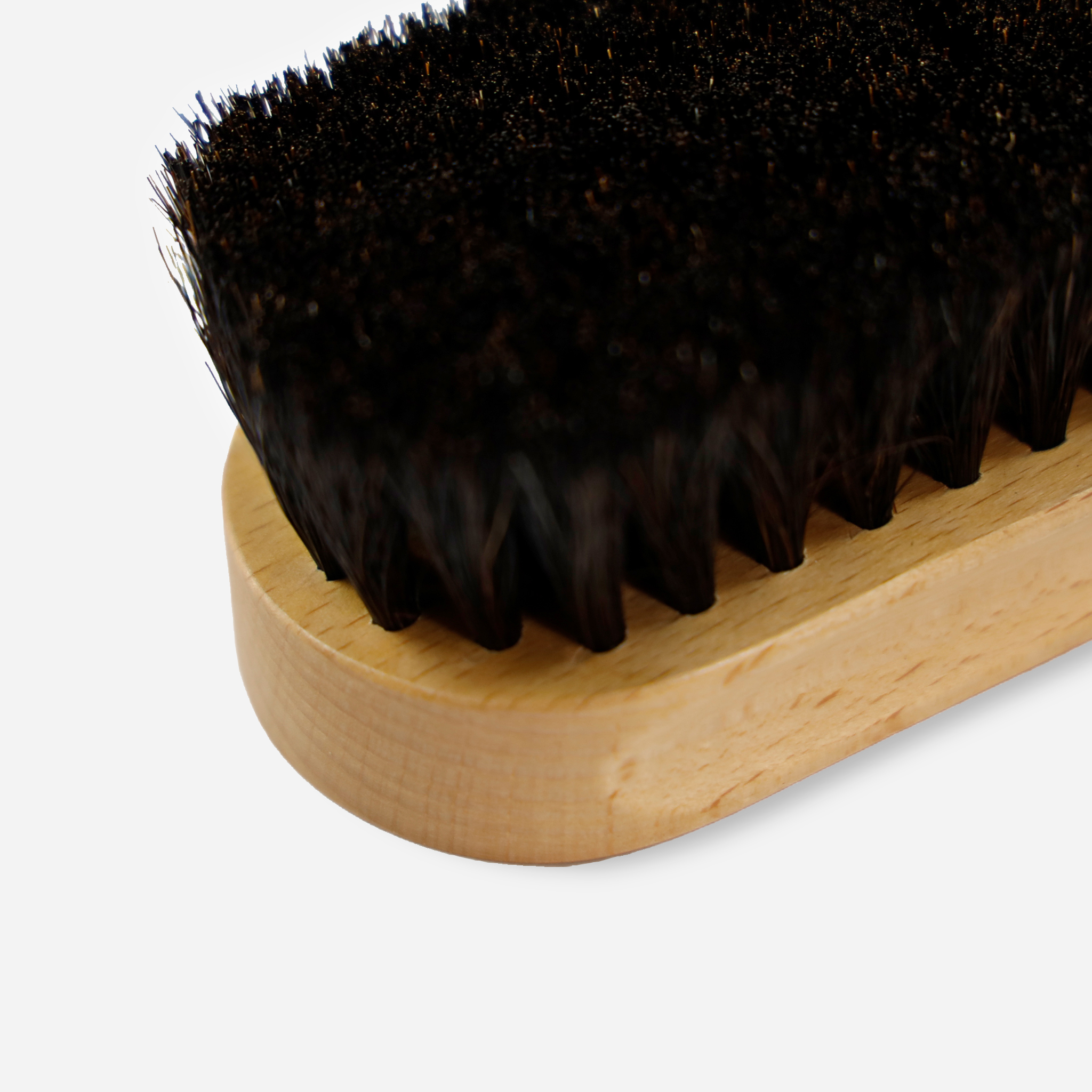 お手入れ前の埃落としやクリームの塗込み等、日常のお手入れ全般にご使用頂けます。*エキゾチックレザーにはヤギ毛のファインポリッシングブラシがおすすめです。