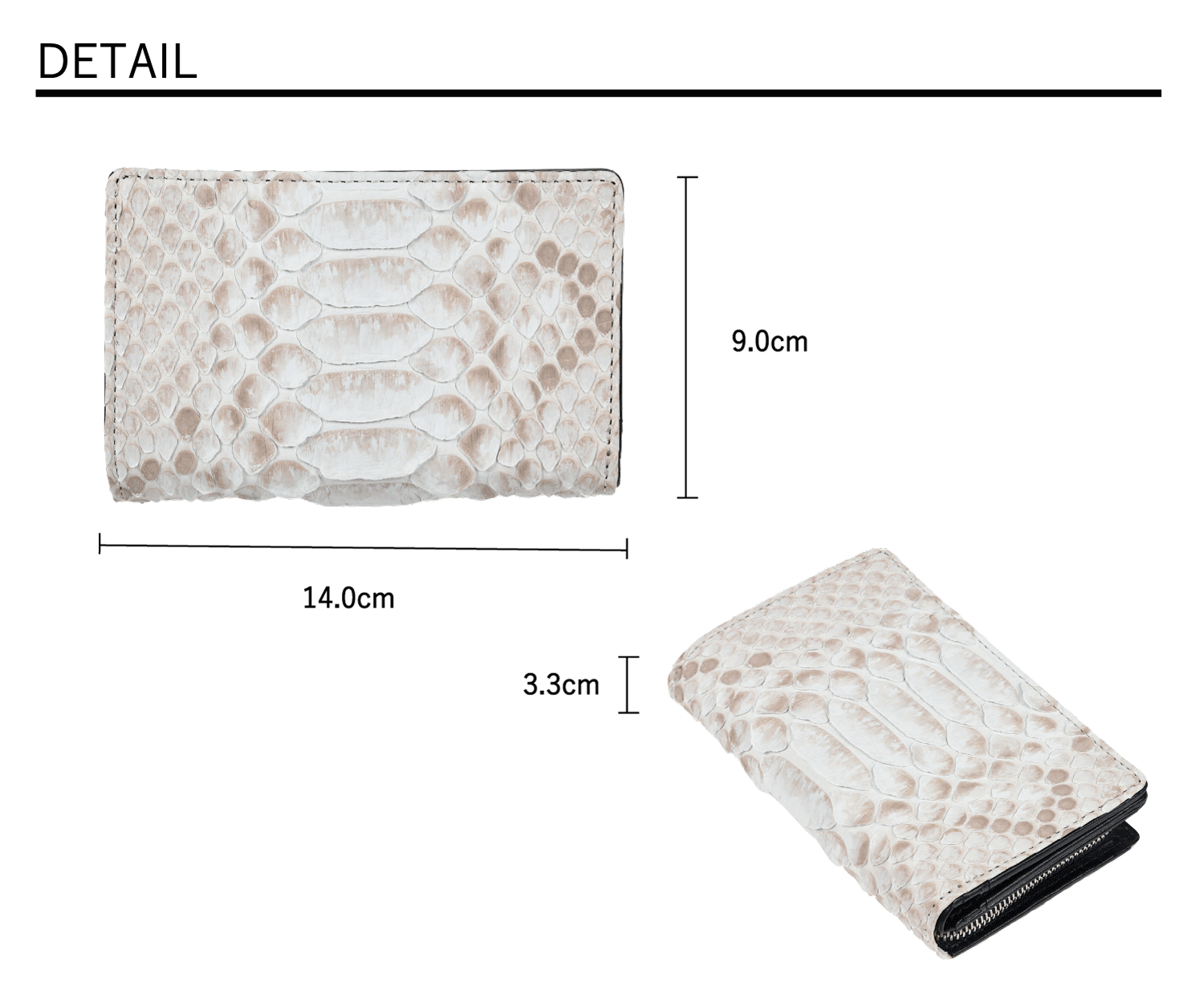 しっとりとした質感が魅力のブリーチダイヤモンドパイソンを使用したミドルサイズのお財布です。