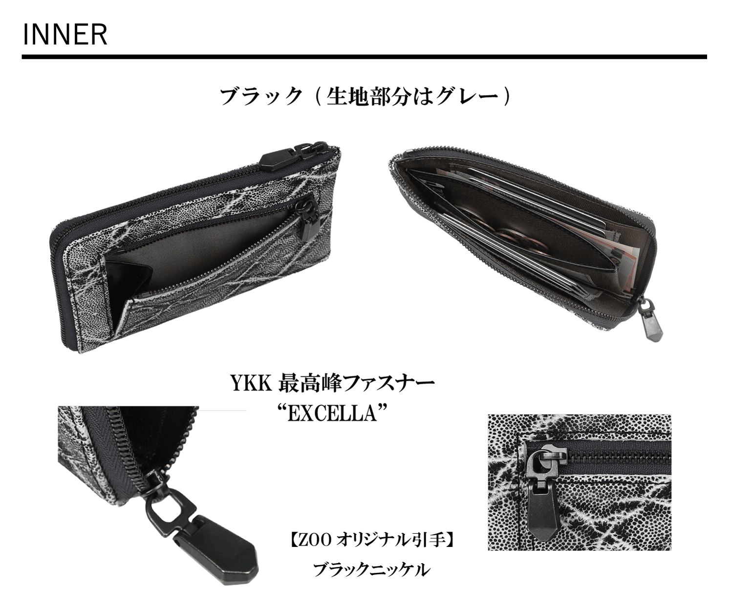 ファスナーはYKK最高峰のEXCELLAを採用しており、ZOOオリジナルの引手を使用しております。