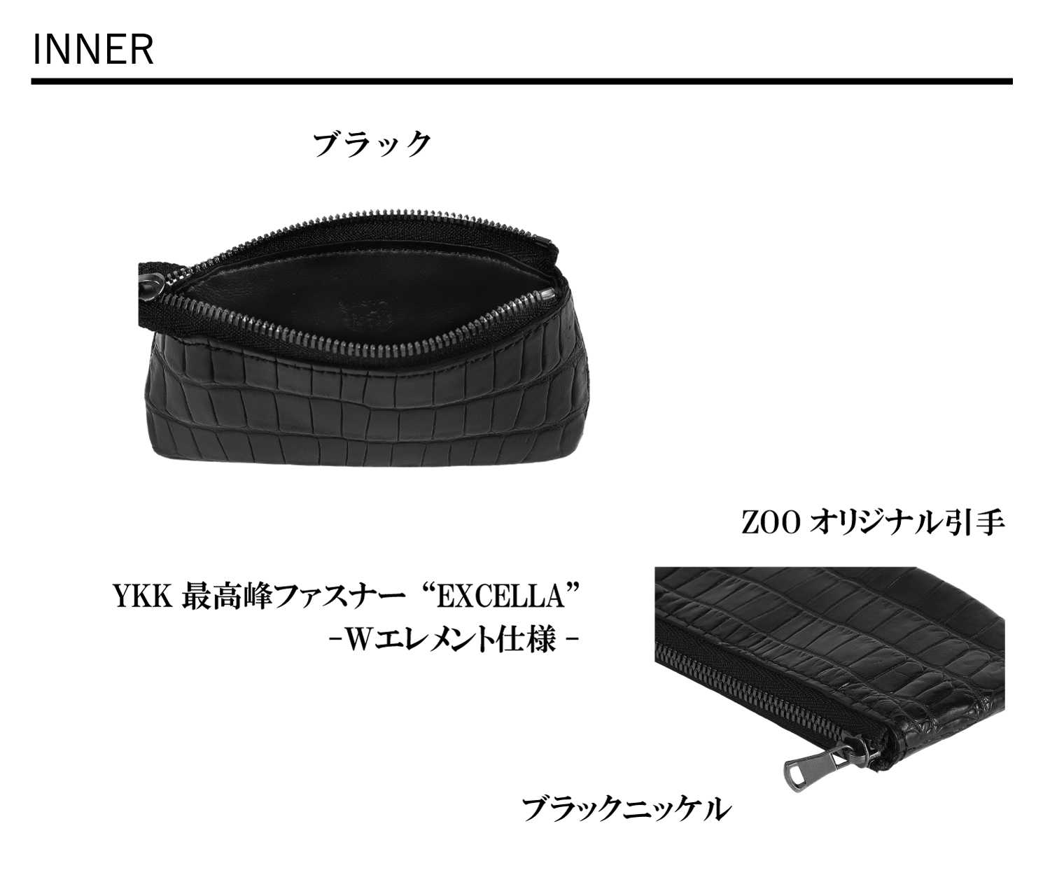 ファスナーは、YKK最高峰の”EXCELLA”-Wエレメント仕様-を採用しており、ZOOオリジナルの引手でございます。