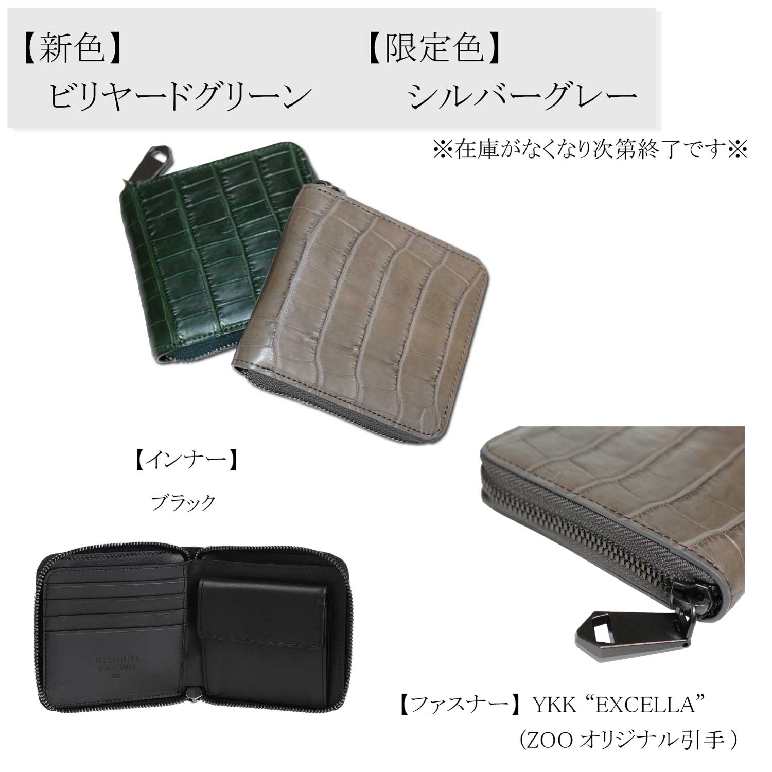 高級素材として扱われているアリゲーターを使用した二つ折りラウンドウォレットです。
