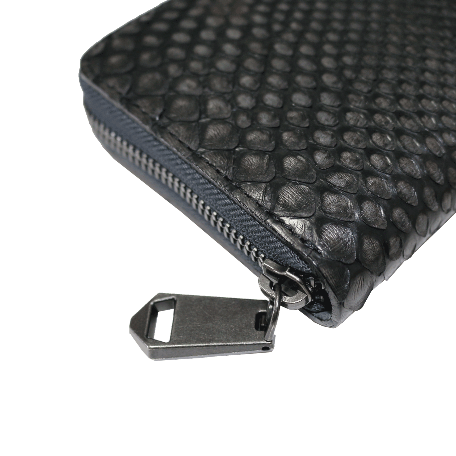 天然素材の為、パイソンレザーの鱗の大きさや墨染めの模様は一点ずつ異なります。