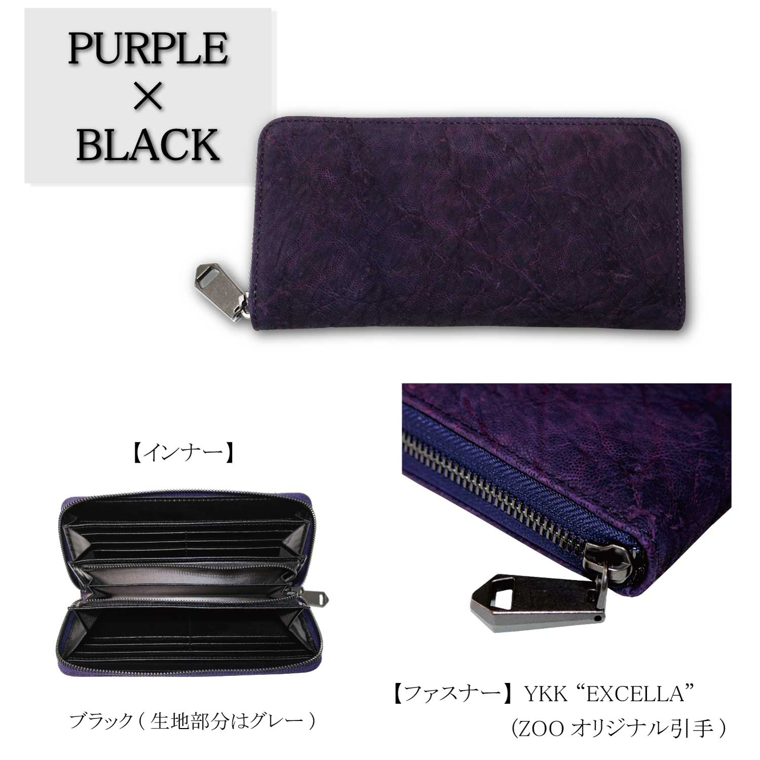ファスナーはYKK最高峰のEXCELLAを採用し、ZOOオリジナルの引手を使用しております。