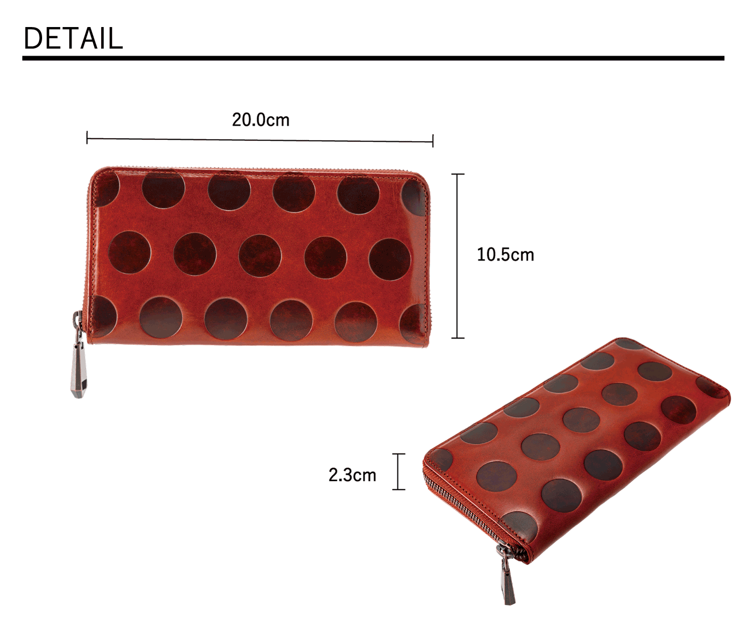 *イタリアンレザーの自然な風合いを残す為に、ドットの部分には着色やオイル等を使用せずにそのまま素押しの状態にしております。